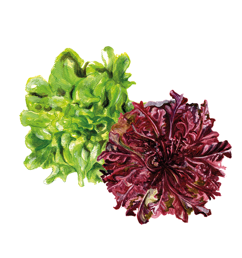 Det går nästan att äta bladväxter till varje måltid. Lättodlade, goda och nyttiga och inte sällan väldigt vackra i odlingen. Vi har vanliga sallater och några andra spännande bladväxter. Tänkt på att lökblast och kryddor gör sig bra i en sallad också, tex salladslök och persilja. Och inte minst – ta med ogräset in i köket! Svinmålla, våtarv och späda maskrosblad mfl blir bra tillskott.